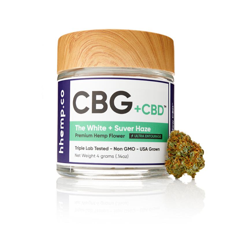 Contains 2 grams of The White CBG hemp flower and 2 grams of Suver Haze CBD hemp flower in each jar.