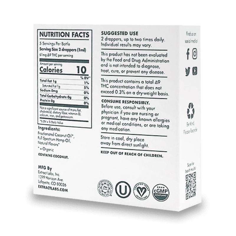 Extract Labs CBD Tincture does not contain any artificial colors, preservatives, or fillers. We deliver a tincture that is as close to nature as it can be. The only ingredients in our bottles are Coconut oil and non-GMO hemp grown with organic standards in the Colorado sun, extracted with carbon dioxide.