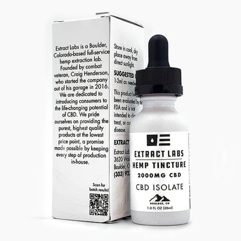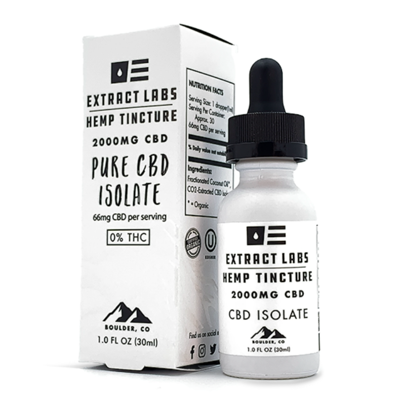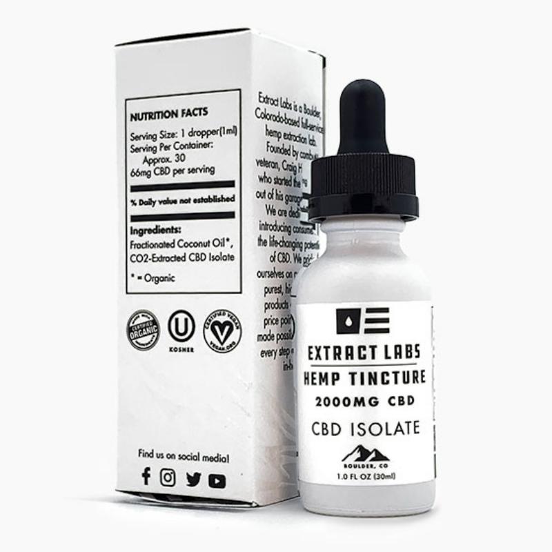 Extract Labs Pure CBD isolate tincture contains only organic coconut oil and our award-winning isolate. Comes in a 30ml, 2000mg CBD bottle.