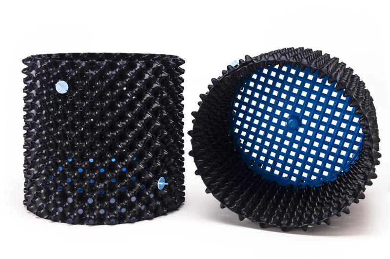 Made of recycled HDPE in the UK, the Air-Pot® is circular in shape with a perforated sidewall.  There are no flat surfaces due to the inward and outward pointed cones, which eliminates any chance of starting the spiraling process as well as dramatically increases growth rates.