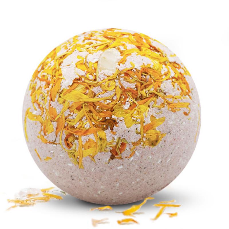 This uplifting citrus bomb is made with moonstone, calendula petals, white chestnut and wild rose to bring clarity and joy. With 100mg of CBD isolate, try the Bliss bomb for never-ending splendor.