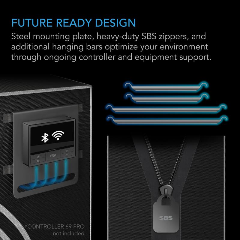 What sets this grow tent apart is its future-ready design. Equipped with a controller mounting plate, it ingeniously allows for seamless cable management without any light leaks. Utilize this feature to streamline your setup and ensure that your plants are always getting the ideal amount of light and heat.