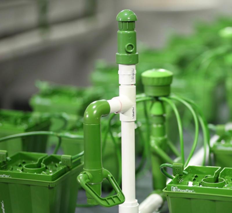 The FloraFlex® Air Bleed Valve 2.0 (3/4") should be installed at the highest point (above manifold) on any mainline to prevent air locks. When water starts to flow, air is forced out of the Air Bleed Valve 2.0. When water hits the valve, the valve closes and water flows freely through the line. This product gives you more control over the accuracy of your feedings.
