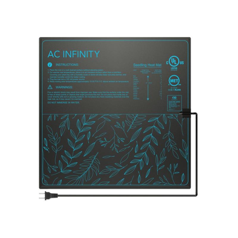 This heating mat is UL-certified (E518635), achieving safety standards for electric heating appliances and electrically heated warming pads. It also meets MET standards (certificate #E115128) for electrical appliance safety, ensuring harm-free use in indoor heating applications. These certifications are verifiable through their respective online directories under AC Infinity Inc. The heating mat is additionally rated for fire resistance and safe temperature regulation.